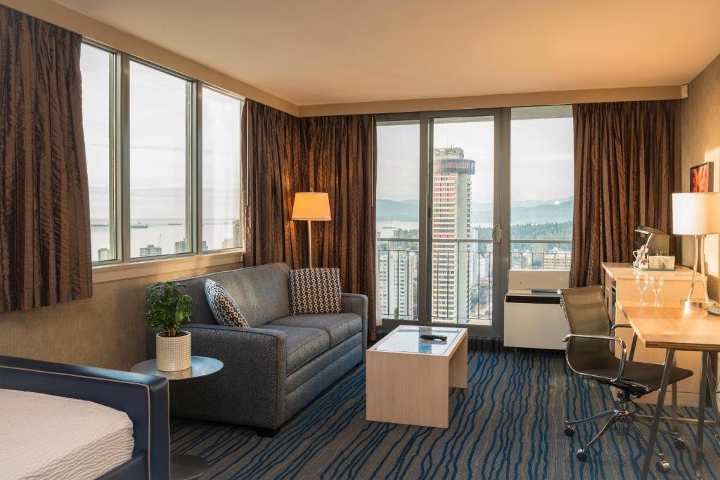Featuring an indoor pool, a hot tub and a steam room, this contemporary Vancouver hotel is situated directly on Robson Street near shopping and restaurants. Corner guest rooms include a full balcony with views of the city or the Vancouver skyline. Free WiFi is provided throughout the property. Each room at the Blue Horizon Hotel includes a flat-screen TV, refrigerator and coffee-making facilities. A small fitness centre is available at the hotel. Guests have access to the business centre with fax and photocopying services. The ABODE restaurant offers breakfast and weekend brunch. This property is non-smoking for added guest comfort. Granville Island is 3.8 km from Blue Horizon Hotel. English Bay and Stanley Park are a 5-minute drive away. The Greece Place Cruise Ship Terminal is 1.3 km from the property.